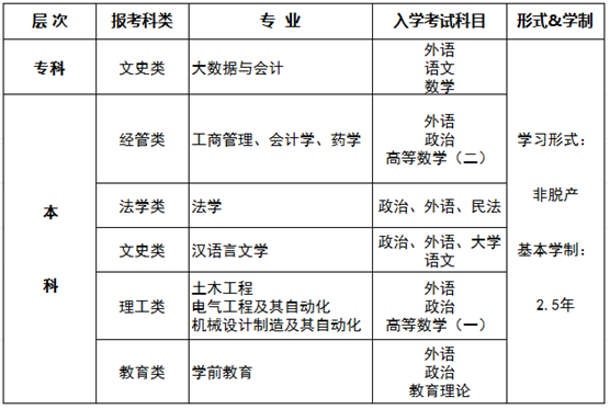 1、专升本:取得教育部国民教育系列高等学校、高等教育自学考试机构颁发的专科及以上毕业证书的在职人员和有志青年。